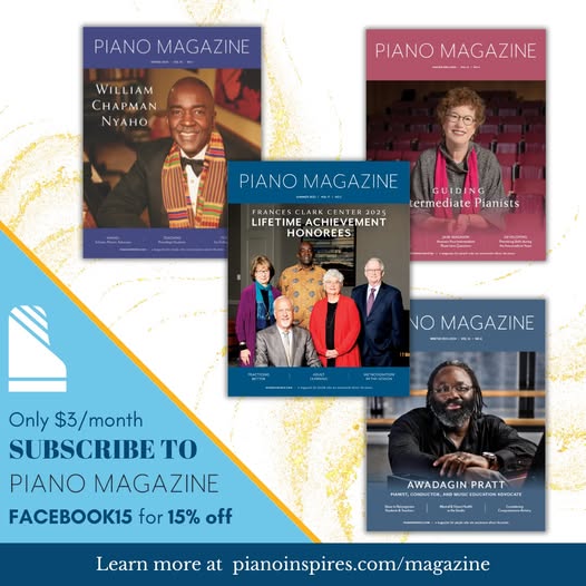 For decades, our magazine has inspired the piano community. Unlock access to 1,500+ articles on teaching, learning, and performing at pianoinspires.com. 🎹 Start your subscription now and enjoy 15% off with code PIANOMAG15. Visit pianoinspires.com/subscribe (fb)