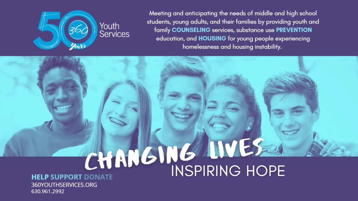 360 Youth Services Changing Lives Inspiring Hope Our Locations ADMINISTRATION OFFICE1323 Bond St Ste 119Naperville IL 605636309612992 AdministrativePrevention6307179408 Counselingfax 6305968496 Changing Lives Inspiring Hope Youth Experiencing Homelessness were Provided with Safe Housing Lives Impacted through Counseling Sessions Individuals with Substance use Prevention Education Years Helping Youth Youth participated in Operation Snowball SixthTwelfth Graders served Annually through CommunityWide Programs Individuals were served Power of Choice Campaigns of Student Participants said Snowball had Significantly Impacted Them Media Impressions of Substance use Awareness Campaigns Our Mission Vision Our Mission is to provide lifechanging services to youth through substance use prevention education counseling and housing. Our Vision is a community where all youth possess the necessary skills to successfully navigate lifes challenges. HELP IS ON THE WAY LET US HELP YOU. Today 360 Youth Services offers substance use prevention education counseling and housing.