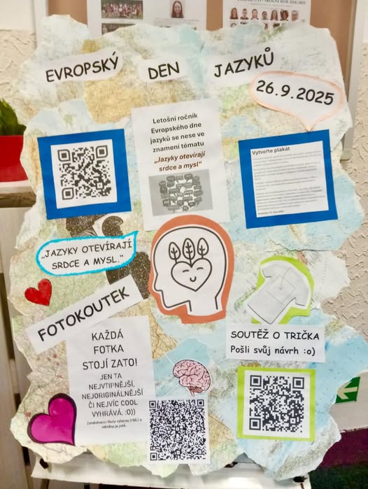 📢 V pátek 26. 9. 2025 opět po roce slavíme Evropský den jazyků🌍✨ Ve vestibulu školy najdete foto koutek 📸 – fotografie budou ihned vkládány na Padlet. 👉 Více informací najdete na plakátu. Těšíme se na vás💬🎉 https://padlet.com/PavlaPankova/den-jazyk-8rhj48g70n56ze8w?fbclid=PAVERFWAM3azhleHRuA2FlbQIxMAABpwQ6c-QBmIe9MlnSHFYw6lOoiYvN6FAJIOQU1b4RWsyQUKH21GkhY3n7U3Hk_aem_N6SI90p2m52SUsqt8uC3BQ (fb)