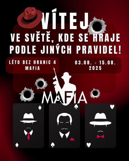 🕶️💼 LÉTO BEZ HRANIC 4: MAFIA – SVĚT PODSVĚTÍ ČEKÁ! 🔫🚗 Vstup do světa, kde se hraje podle jiných pravidel! 🃏💣 V tomto táborovém podsvětí čekají napínavé mise, zkoušky důvěry a tajná a nebezpečná setkání. 📅 Termín: 3. 8. – 15. 8. 2025 📍 Místo: RS Hutě 💰 Cena: 8 999 Kč Staň se součástí Léta bez hranic: MAFIA a ujisti se, že jsi na správné straně historie… nebo alespoň na té vítězné! 🔥 #letobezhranicmafia #taborbezhranic #dovenezapomeneš #tahykteresehrajoutajně #podsvetijede #letobezhranic #detibezhranic (fb)