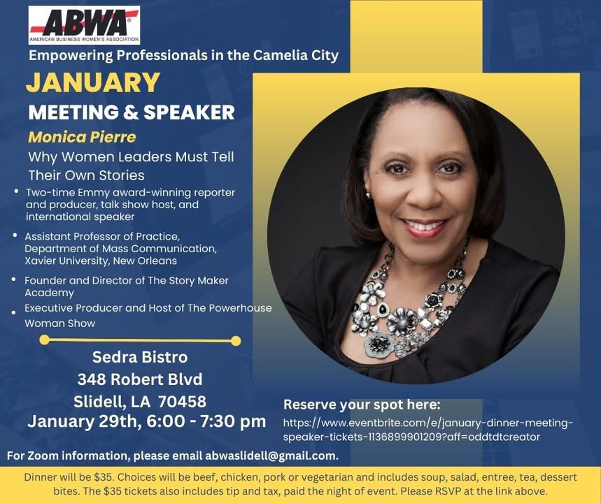 DO NOT miss out on this incredible opportunity to join our newest ABWA Chapter! Empowering Professionals in the Camelia City Chapter Kickoff Meeting: Wednesday, January 29th, 6pm cst. RSVP below Are you looking to expand your client base and grow your network? Do you want to take your business to the next level? Then we are what you want! Build powerful networks and drive your business. JOIN ABWA NOW! (fb)