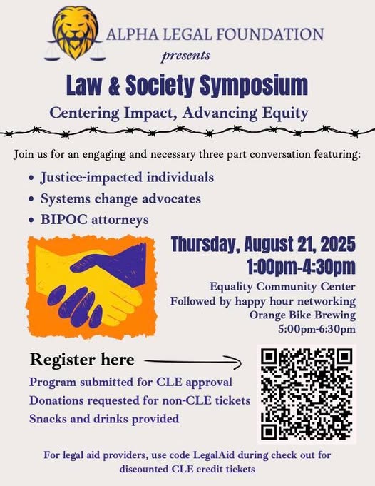 Joseph Jackson, Executive Director of MPAC, will be there to present First Hand Account of Maine’s Carceral System at 1:15p. Registration link below and flyer attached. Hope to see many of you there! Law & Society Symposium: Centering Impact, Advancing Equity Date: August 21, 2025 Time: 12:30-4:30 pm w/ Networking at Orange Bike Brewery at 5 pm Location: Equality Community Center, 15 Casco Street, Portland, Maine / Orange Bike Brewing, 31 Diamond Street, Portland, ME This symposium brings together justice-impacted individuals, civil legal aid providers, public defenders, and BIPOC attorneys to reflect on the realities and possibilities of a more just legal system. If you plan to attend, please register ahead of time. Tickets are free/donation based and attorneys seeking CLE credit, there is a ticket option for that as well. Link to Register: https://www.eventbrite.com/e/law-society-symposium-registration-1468133098619?aff=oddtdtcreator There will be 3 panels including: Lived Experience First: Justice-impacted individuals will share powerful stories of navigating systems of punishment, support, reentry, and and the good work that is being done. Bridging Gaps in Access: Professionals who work within the systems and challenge the systems will discuss the opportunities and limitations of their work, and explore collaboration can advance justice. BIPOC Attorney Roundtable: Attorneys of color will offer personal insights into their path to the profession, the structural barriers they faced, and the transformative role the play in building a more inclusive legal landscape. (fb)