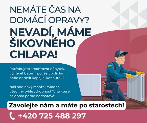👨🔧 Hodinový manžel – domácí práce bez nervů 👨🔧 Potřebujete smontovat nábytek, vyměnit baterii, pověsit poličku nebo opravit kapající kohoutek? Náš hodinový manžel zvládne všechny tyhle „drobnosti“, na které se doma pořád nedostává! 📅 Rychlé termíny ✅ Spolehlivost 🛠 Vše potřebné si přiveze s sebou ☎️ Zavolejte nám +420 725 488 297 (fb)