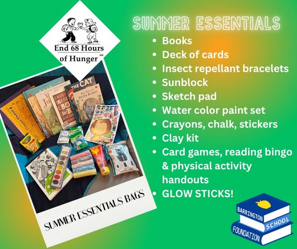 We recently created and handed off 18 bags of summer essentials to End 68 Hours of Hunger Barrington NH. BSF wishes the participants of Barrington's End68 program a fun, safe, and creative summer! (fb)