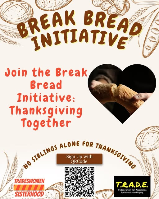 ✨ We’re excited to introduce the Break Bread Initiative, co-hosted by Tradeswomen Sisterhood & T.R.A.D.E. ( @tradeswomenran ) This Thanksgiving, we’re on a mission to ensure that no Tradeswoman or LGBTQ+ Sibling spends the holiday alone. Here’s how it works: 1. Sign Up: If you have an extra seat at your table, consider hosting a fellow sibling for Thanksgiving. If you’re looking for a place to join, let us know! 2. Partnership: Once you sign up, we’ll match hosts with those who need a table. You’ll receive details the week before Thanksgiving. 3. Multiple Hosts: If you have plenty of room, feel free to host multiple siblings at your table! The more, the merrier! Together, we can create a warm and welcoming community. Let’s share meals, laughter, and support this holiday season! 👉 Ready to make a difference? Use the QR code on the flyer or click the link in our bio to sign up as a host or to find a table to join! #BreakBreadInitiative #ThanksgivingTogether #NoOneAlone #TradeswomenSisterhood #TRADE #tradeswomenran #IBEW #UA #IW #SMART #socaltradeswomen (fb)