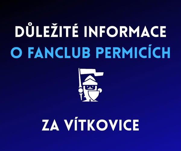 🔥 Informace o Fanclub permicích 🔥 Vítkovičtí, přípravné zápasy se pomalu blíží a s nimi přicházíme s informacemi o našich permicích. Pro tuto sezónu dochází k zásadní změně, všichni členové Fanclubu totiž přechází na permici v aplikaci Moje Vítky! Již nebudeme vydávat doteď používané kartičky. Cena permice je 3800, členský příspěvek zůstává na 500 korunách. Co dělat pokud: JSEM STÁVAJÍCÍ ČLEN FANCLUBU - Svou kartičku z minulé sezóny si můžu nechat, nebo vrátit členům vedení (nejdřív na členské schůzi) pro vrácení 200 korun zálohy - Na účet Fanclubu pošlu/osobně členům vedení dám 500 jako členský příspěvek pro sezónu 2025/26 - Od členů vedení pak OSOBNĚ dostanu promo kód, který v aplikaci použiji pro nákup Fanclub permice MÁM ZÁJEM STÁT SE NOVÝM ČLENEM FANCLUBU - Pošlu na email vyplněnou přihlášku, kterou najdu na webu Fanclubu (http://www.fanclub-hcv.cz/ostatni/ke-stazeni) - Na účet Fanclubu pošlu/osobně členům vedení dám 600 jako členský příspěvek + zápisné pro sezónu 2025/26 - Od členů vedení pak OSOBNĚ dostanu promo kód, který v aplikaci použiji pro nákup Fanclub permice Důležité! Permici s promo kódem jde zakoupit pouze do sektoru C2, v ostatních sektorech bude blokována! V nejbližších dnech zveřejníme datum členské schůze, kde bude první možnost získat kódy pro nákup permice! V případě dotazu nás neváhejte kontaktovat na emailu, webu, Facebooku, Instagramu či Whatsappu, jsme tady pro vás. Moc se těšíme na všechny zápasy, co nás v příští sezóně společně čekají 💙 (fb)