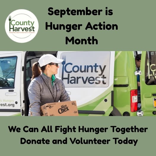 Hunger across the country and in Westchester County is at an all time high with groceries and basic meals out of reach for many of our friends and neighbors. To help please donate and volunteer this Hunger Action Month! We can all make a difference together. Thank you! https://countyharvest.org/join-us/donate-funds Volunteer@countyharvest.org (fb)