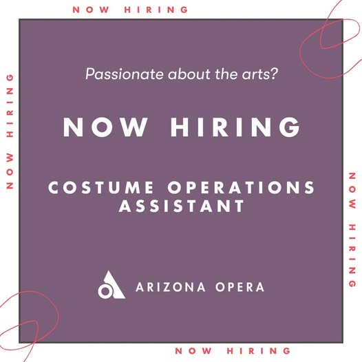 WE'RE HIRING! Arizona Opera is looking to add a Costume Operations Assistant to its 2025/26 Season team. This position offers hand-on experience supporting both administrative and day-to-day operations of the costume shop. This role is ideal for students or emerging professionals interested in learning about costume shop management, production processes, and arts administration in a professional opera setting. LEARN MORE: https://ow.ly/AsOy50WOttC (fb)