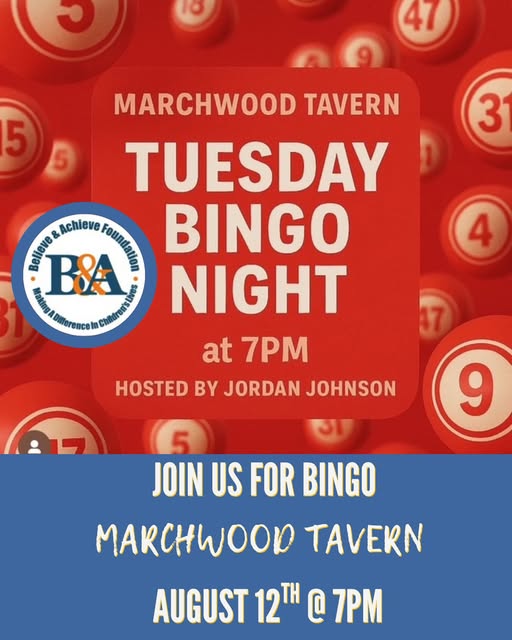 Join us for a night of fun and fundraising @marchwood.tavern for Tuesday Night Bingo on 8/12/25 @7pm (fb)