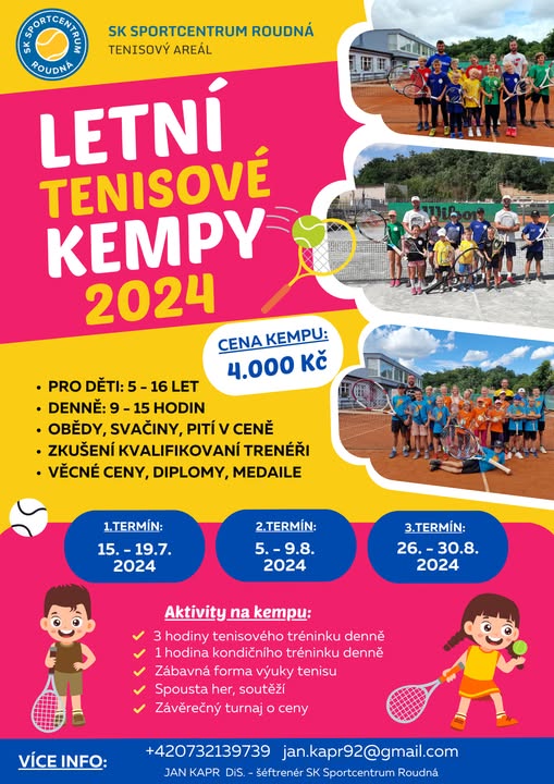 LETNÍ TENISOVÉ KEMPY 2021 před 4 lety Tradiční letní tenisové kempy v Plzni proběhnout letos ve dvou týdenních termínech o letních prázdninách 2021. 20. 4. 2020 Zahajujeme letní sezónu.