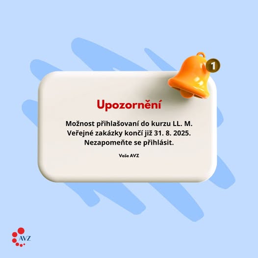 ✨💡Již zbývá pouze pár dní do uzavření registrace do 2. běhu mezinárodně uznávaného programu LL.M. Veřejné zakázky 🎓 👉Do 2. běhu programu LL.M. Veřejné zakázky je stále ještě možné se přihlásit přímo na odkazu Právnické Fakulty UK nebo přes stránky AVZ. ⌛Termín pro podání přihlášky je stanoven do 31. 8. 2025. Kapacita účastníků je omezena. (fb)