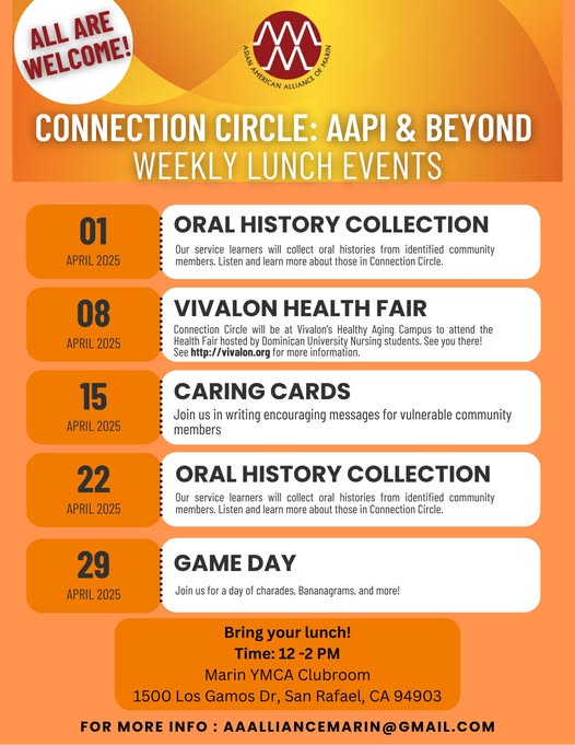 Asian American Alliance of Marin AAAM Annual Dinner Gathering2024 AAAM Annual Dinner will be hosting our annual dinner gathering on November 8th 2024. The topic of this years gather is dinner is Cultural Awareness and Understanding. The event will offer a time to build community receive community updates and an update on the implementation of the Ethnic Studies curriculum in Marin. Please join us at the Vivalon Healthy Aging Campus 999 Third St.