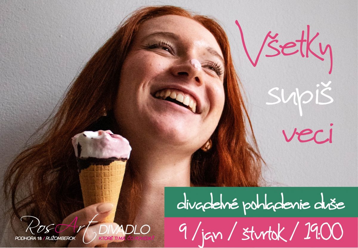 🌧️Ako nestratiť hlavu ani v sychravom počasí ? ☀️Tak ako vždy nie svieti slnko, aj v našom živote sú chvíle kedy máme pocit že už nikdy na oblohu spoza mrakov nevyjde. 🧐Čo v takých chvíľach robiť? 🙂↕️Poďme to dnes o 18:30 spolu zistiť v divadle RosArt. 🎫Rezervácie: https://www.oz-rosart.sk/program/475-vsetky-supis-veci-interaktivne-predstavenie #rosart #divadlorosart #divadloruzomberok #kultura #ruzomberok #vsetkysupisveci (fb)