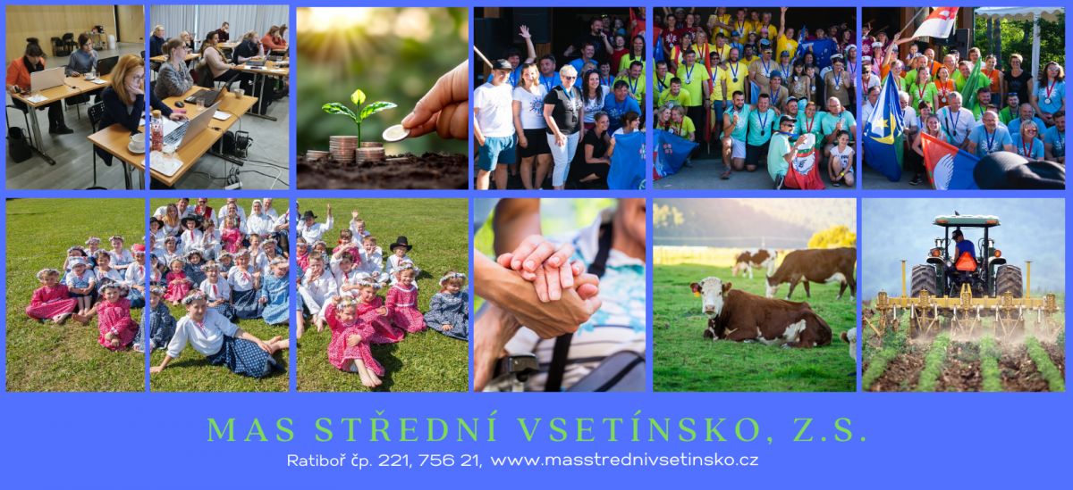 Veřejný sektor Podpora veřejného sektoruv oblasti MAS Střední Vsetínsko Podnikatelský sektor Podpora podnikatelského sektoru v oblasti MAS Střední Vsetínsko Neziskový sektor Podpora neziskových sektorou v oblasti MAS Střední Vsetínsko MAS Střední Vsetínsko MAS Střední Vsetínsko, z. s. (dále jen MAS SV), je spolkem, v němž se dobrovolně sdružují fyzické i právnické osoby, jejichž společným cílem je podpora komerčních i neziskových aktivit ke zlepšení kvality života obyvatel žijících na území 12 obcí. Cílem Místní Akční Skupiny je zprostředkovat pro vás podporu v podobě evropských dotací pro místní rozvoj.