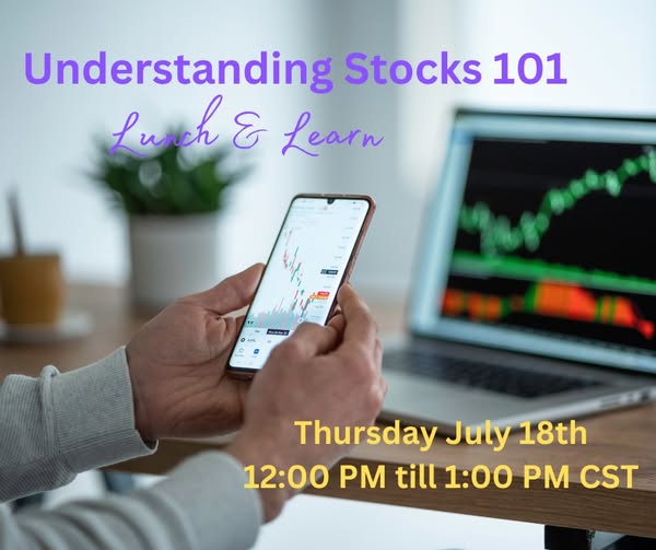 OK the people have spoken, I will be doing a "Understanding Stocks 101" Lunch & Learn session on Thursday July 18th and a "Understanding Mutual Funds 101" follow up session on the 25th. Both sessions will be held at 12:00 PM CST. So make plans to attend by registering. Don't MISS OUT!!!! https://us06web.zoom.us/meeting/register/tZAoc-6grT0pEtyqPrr3Dg0K8xGyeCmNYF7a (fb)