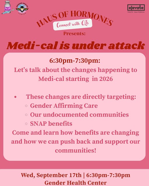 Hello folks! There are many changes happening to medí-cal benefits starting in 2026, we invite you to attend, tell your neighbors, your siblings, your tias chismosas! It is important we stay informed to continue supporting one another. Hope to see y’all there!💗 (fb)