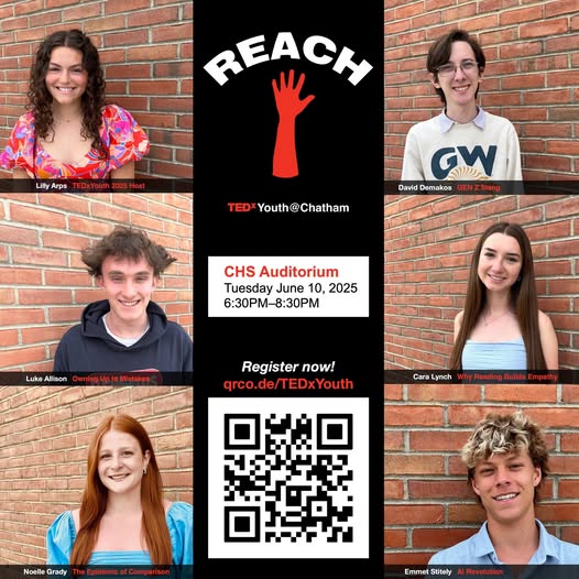 🎫 Last Chance! 🎫 Join us TONIGHT for this year’s TEDxYouth@Chatham event! Don’t miss an evening of powerful talks and performances by Chatham students and teachers, all centered around the inspiring theme: REACH. Register now: qrco.de/TEDxYouth 📍 Chatham High School Auditorium 🕗 Doors open at 6:30 PM | Program begins at 7:00 PM Come be inspired by the voices of our own community. See you tonight! #chathamedfoundation #schooldistrictofthechathams #cef30years #TEDxYouth #supporteducation #communityevent (fb)