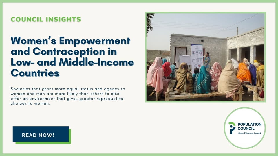 Women’s empowerment and agency, shaped by individual and community experiences, strongly influences contraceptive choices. In a recent review, Zeba Sathar and Shireen J. Jejeebhoy examine the relationship between women’s empowerment and contraceptive use in low- and middle-income countries. Three key conclusions emerged: 1️⃣Context matters. Families and societies influence both female agency and sexual relationships, playing a strong role in women’s reproductive behavior. 2️⃣ There is a need to further explore the relationship between and across women’s agency and patterns of contraceptive use. 3️⃣ Contraceptive endpoints must shift from measuring contraceptive use to measures that also reflect women’s intent about whether to practice contraception, and the timing and choice of specific contraceptive methods. Read more: https://bit.ly/4pLwSfZ #WCD2025 (fb)