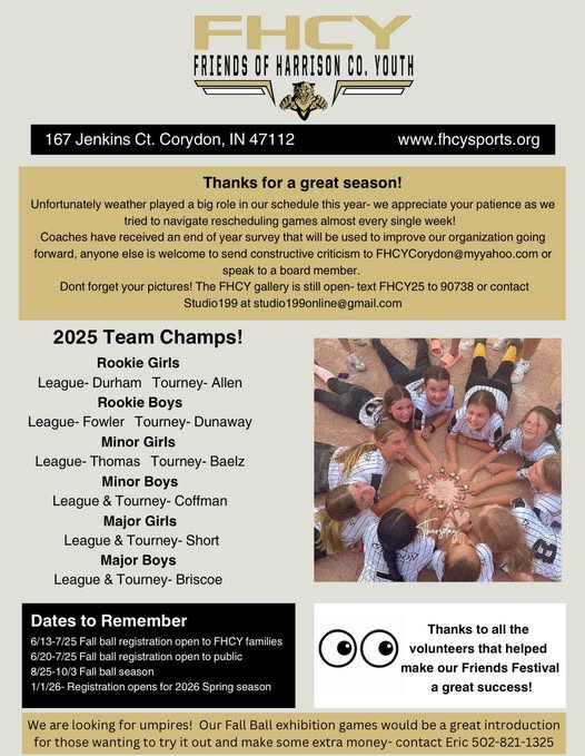 Looking Forward to Another Successful Season in 2025. Practices start March 3rd. If you haven39t had heard from your coach please send us a message Important upcoming dates. March 1 2025 FHCY Field work day 9am.