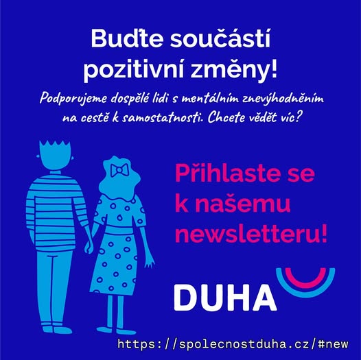 Věříme, že společnost je silná tehdy, když je tu pro všechny. V Společnosti DUHA podporujeme dospělé s mentálním znevýhodněním na jejich cestě k samostatnosti a spokojenosti. 📬 Přihlaste se k našemu newsletteru a budete mít přehled o tom, jak: ✔ Pomáháme lidem tvořit svůj vlastní domov, najít práci a společenské kontakty. ✔ Měníme přístup společnosti k mentálnímu znevýhodnění. ✔ Můžete přispět svou pomocí, časem nebo sdílením. Vaše podpora je důležitá! Přihlaste se hned teď: https://spolecnostduha.cz/#new Věříme, že společnost je silná tehdy, když je tu pro všechny. V Společnosti DUHA podporujeme dospělé s mentálním znevýhodněním na jejich cestě k samostatnosti a spokojenosti. 📬 Přihlaste se k našemu newsletteru a budete mít přehled o tom, jak: ✔ Pomáháme lidem tvořit svůj vlastní domov, najít práci a společenské kontakty. ✔ Měníme přístup společnosti k mentálnímu znevýhodnění. ✔ Můžete přispět svou pomocí, časem nebo sdílením. Vaše podpora je důležitá! Přihlaste se hned teď: https://spolecnostduha.cz/#new #newsletter #dospelilidesmentalnimznevyhodnenim #nejsemlhostejny #zajem (fb)