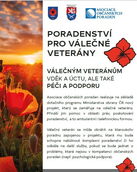 🎖️ Válečným veteránům nejen vděk, ale i praktická pomoc. Naši kolegové z Poradny pro občany v nesnázích v Rokycanech nabízí všem, kdo nosí nebo nosili uniformu, pomoc v rámci nového projektu zaměřeného na podporu válečných veteránů. 🤝 Cílem je ukázat, že v tom nejsou sami – ať už řeší právní otázky, složitou životní situaci, nebo potřebují jen nasměrovat na vhodné služby. Projekt běží díky podpoře Ministerstva obrany ČR a realizuje ho Asociace občanských poraden. 🧭 Poradenství je dostupné osobně i telefonicky a je zcela bezplatné. Každý veterán se může obrátit na kteroukoli zapojenou poradnu po celé republice. 📩 Sdílejte tuto informaci, ať se dostane ke všem, kterým může pomoci. 👉 Více informací vám rádi poskytneme přímo u nás nebo najdete na webu Asociace občanských poraden. #DiakonieZápad #PoradnaProVeterány #VálečníVeteráni #PomocBezPředsudků #AsociaceObčanskýchPoraden #PodporaVeteránů #NejsiNaToSám #ÚctaAPéče (fb)