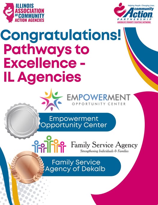 🎉 Join us in celebrating two of our outstanding member agencies for achieving national recognition through Pathways to Excellence in 2025! 🏆 🏅 Empowerment Opportunity Center – Silver Tier 🥉 Family Service Agency of DeKalb County – Bronze Tier These awards recognize their commitment to excellence, continuous improvement, and mission-driven service. By participating in Pathways to Excellence, these agencies are strengthening their internal systems, expanding their impact, and setting the bar high for leadership in the Community Action network. 👏 Congratulations to both teams for your hard work and dedication! #CommunityAction #PathwaysToExcellence #MissionDriven #ExcellenceInAction (fb)