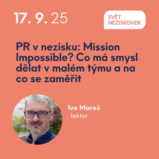🗞️ Dělá vaše organizace skvělé věci, ale média vašim tématům nevěnují pozornost? 📱 Chybí vám komunikační strategie a nejste si jistí, co a jakým způsobem komunikovat? 🪑 Nebo všechno máte, ale chybí vám čas, lidé a finanční zdroje? Na komunikačním workshopu Mission Impossible se dozvíte, jak si poradit v situaci, kdy nápadů je mnoho, ale čas na jejich realizaci je omezený. Jak si poradit v situaci, kdy chybí komunikační strategie, nebo nejsou definované cíle. A také jak se vyznat v nepřehledném světě médií a jejich potřeb. Těšíme se už příští týden, 17. září! ⤵️ Místo si zaberte tady: svetneziskovek.cz/kurzy/pr-v-nezisku-mission-impossible-co-ma-smysl-delat-v-malem-tymu-a-na-co-se-zamerit-1 @fanoušci (fb)