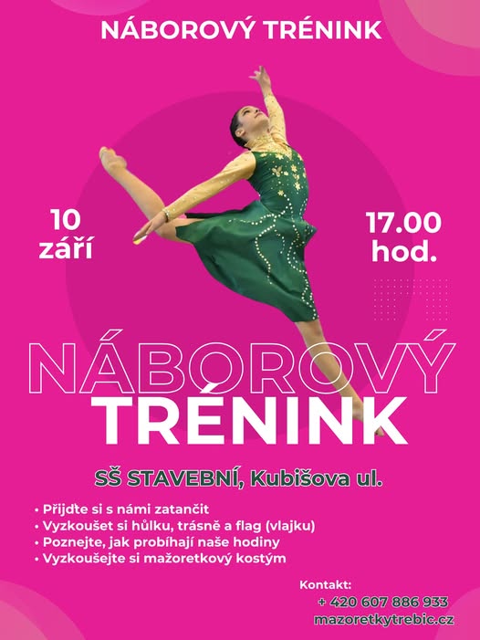 Je to tady!! 🤩🤩 Po prázdninách se vracíme na značky a rády mezi nás přivítáme nové talenty.🤩 Nevadí jestli nemáš žádnou zkušenost. Rády tě všechno naučíme.😊 Čekají na tebe základy baletu, gymnastiky, pohybové průpravy, práce s náčiním baton, pom a flag (vlajka). Těšíme se na tebe!😍🤩 (fb)