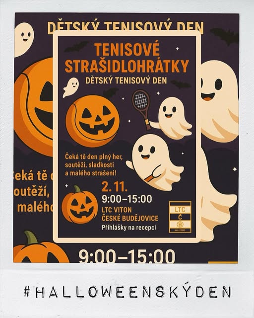 🎃 Podzim je tu a s ním i čas na dalši tenisový den - halloweenský 👻 🗓️ 2.11.2025 ⏰ 9:00-15:00 🧑🧑🧒🧒 Čeká nás den plný pohybu, soutěží, her, halloweenské zábavy - a samozřejmé spousta tenisu ! 🎾 📍Přihlášky do 29.10. na recepci klubu 📋 #Halloween (fb)