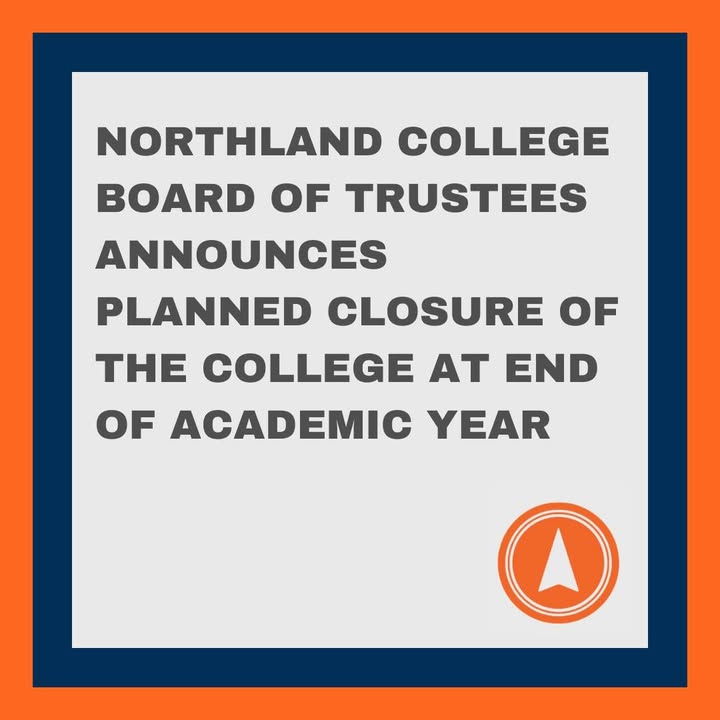 Today the Northland College Board of Trustees voted to close the College at the end of the academic year. With declining enrollment and soaring costs, it takes more to operate the College than we raise in tuition. Northland College has no sustainable path forward. Northland stayed true to its liberal arts missions of environmentalism, sustainability and educational innovation. We are proud of our little school on the great lake and its 133-year legacy of students doing transformative work for good in the world. Read more: https://www.northland.edu/news/northland-college-board-of-trustees-votes-to-close-the-college-at-end-of-academic-year/ (fb)