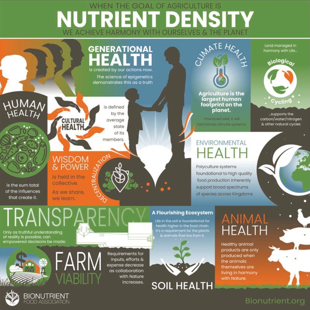 The Bionutrient Food Association Our mission is to build a nutrient dense food supply. We seek to support educate organize and empower farmers scientists and leaders in building human and planetary vitality through the principles of life and nature. Together we are stewards of our food future. We work to support growers in changing their management practices to improve the quality of food they produce.