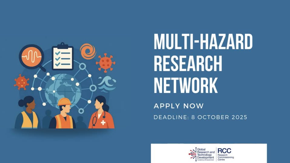 The Foreign, Commonwealth & Development Office is looking to establish the Multi-Hazard Research Network (MHRN), a global platform to deliver rapid, high-quality evidence for crisis prediction, preparedness, and response. We’re inviting a network led by UK-based academic or other non-profit institutions to submit an Expression of Interest. Partners from across the globe (including LMIC institutions) are strongly encouraged to join. Click here for more information: https://www.grtd.fcdo.gov.uk/funding/call-for-expressions-of-interest-establishing-a-multi-hazard-research-network/ (fb)