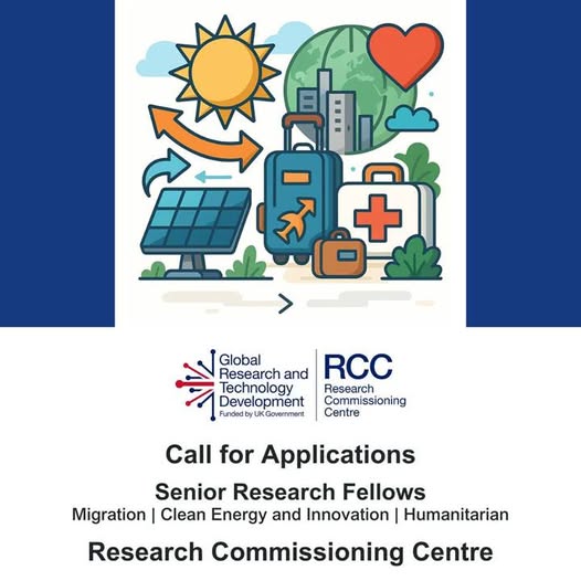Deadline extended! Call for applications: Senior Research Fellows at the FCDO Foreign, Commonwealth & Development Office Research Commissioning Centre, led by International Initiative for Impact Evaluation (3ie) and University of Birmingham, invites applications for three part-time Senior Research Fellow placements in the following fields: ▪ Clean Energy and Innovation ▪ Migration ▪ Humanitarian Key details – Two-year placements hosted at the FCDO (subject to security clearance) – Open to UK-based academics at Associate-Professor level (or equivalent) – New application deadline: 30 September 2025, 17:00 GMT (rolling review) – Interviews: early October 2025 – Start date: 1 April 2026 Full role descriptions, eligibility criteria, and the online application form are available here: https://bit.ly/FCDO_SRF For any clarifications, write to rcc@3ieimpact.org with “Senior Research Fellow – Request for Clarification” in the subject line. #ResearchOpportunities #EvidenceForImpact #DevelopmentResearch #CleanEnergy #Migration #Humanitarian #FCDO #RCC #3ieImpact (fb)
