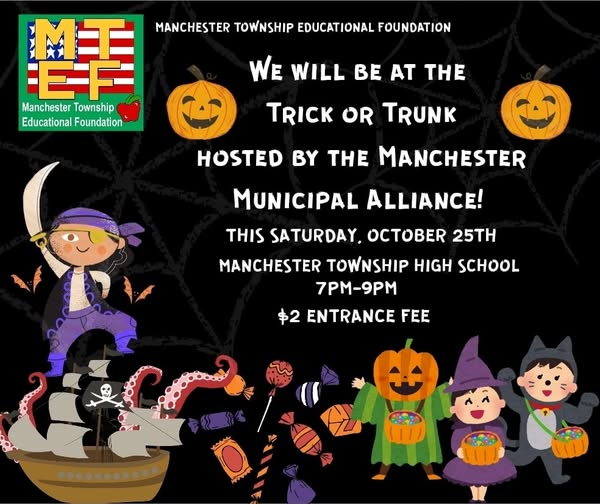 We hope to see you on Saturday night at the Trick or Trunk at MTHS! Hosted by the Manchester Municipal Alliance. 🎃🍬🍭👻 (fb)