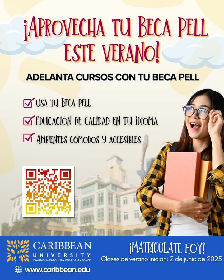 📚☀️ ¡Aprovecha tu Beca PELL este verano! ¿Listo para adelantar tus cursos y avanzar hacia tu meta académica? En Caribbean University puedes utilizar tu Beca PELL para estudiar este verano en un ambiente seguro,cómodo y accesible. ✅ Usa tu Beca PELL ✅ Educación de calidad ✅ Ambientes diseñados para tu éxito 🎓 ¡Completa tu solicitud aquí: https://lnkd.in/eJ9iDkvE 🗓 Clases de verano comienzan el 2 de junio de 2025 #losoñé #lologré #caribbean (fb)