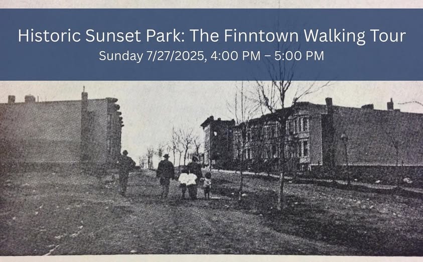 Join our walking tour around Sunset Park’s historic Finntown neighborhood! 💙 With NYC Urban Park Ranger and FCF Board Member Oscar Eilitta Psychas, we will explore the history of the Finnish enclave that thrived around Sunset Park in the early to mid 20th century. Sunday July 27, 4 PM - 5 PM 📍Meeting Point: Central Lawn, Brooklyn (fb)