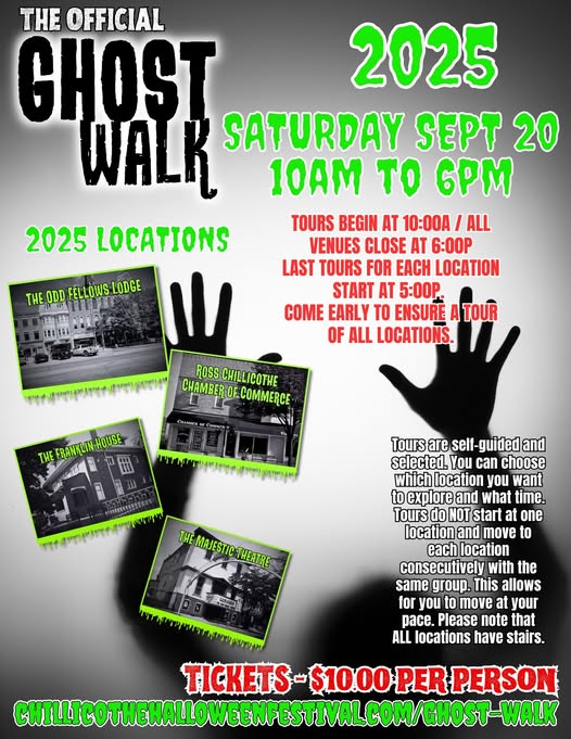 The Ross County Historical Society Museum will be CLOSED for tours Sept. 20 so we can participate in the Chillicothe Ghost Walk! 3m (fb)