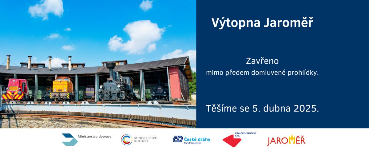 [1] https://www.cz-museums.cz/adresar/kralovehradecky-kraj/nachod/jaromer/zeleznicni-muzeum-vytopna-jaromer/ [2] https://www.vytopnajaromer.cz/kontakty [3] https://www.kudyznudy.cz/aktivity/zeleznicni-muzeum-vytopna-jaromer [4] https://www.vytopnajaromer.cz/pl [5] https://www.vytopnajaromer.cz