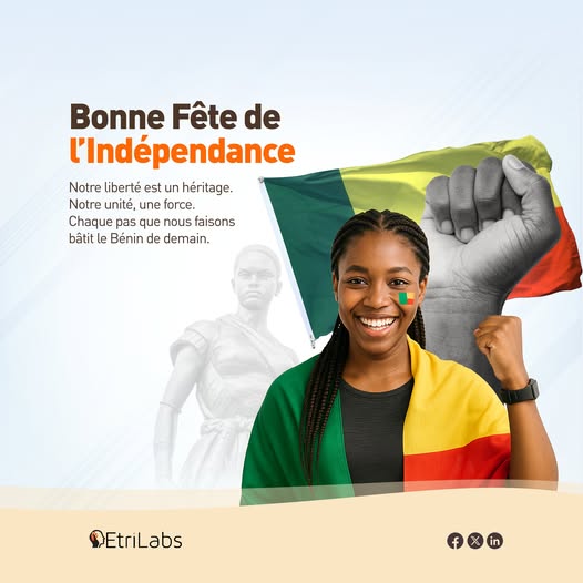 🇧🇯 𝗕𝗼𝗻𝗻𝗲 𝗳𝗲̂𝘁𝗲 𝗱𝗲 𝗹’𝗶𝗻𝗱𝗲́𝗽𝗲𝗻𝗱𝗮𝗻𝗰𝗲 𝗮̀ 𝘁𝗼𝘂𝘁𝗲𝘀 𝗲𝘁 𝗮̀ 𝘁𝗼𝘂𝘀 ! 🇧🇯 Nous sommes les héritiers d’un combat, et nous construisons un #Benin solidaire et tourné vers l’avenir. Un peuple uni par une histoire, une culture et un espoir commun. C’est le moment de rendre hommage à celles et ceux qui ont tracé le chemin, et de renouveler notre engagement pour un futur plus juste, plus inclusif et plus prospère. 𝗙𝗶𝗲𝗿𝘀 𝗱𝗲 𝗻𝗼𝘀 𝗿𝗮𝗰𝗶𝗻𝗲𝘀, 𝗽𝗼𝗿𝘁𝗲𝘂𝗿𝘀 𝗱’𝘂𝗻 𝗵𝗲́𝗿𝗶𝘁𝗮𝗴𝗲, 𝗮𝗰𝘁𝗲𝘂𝗿𝘀 𝗱𝘂 𝗰𝗵𝗮𝗻𝗴𝗲𝗺𝗲𝗻𝘁. #wasexo #Team229 #IndependanceDay (fb)
