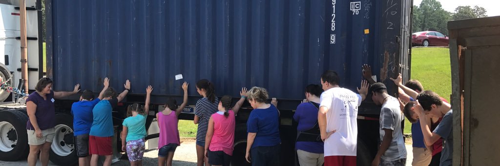 Today from Alabama, we shipped a container destined for Thailand. Also a special thanks to Eric, Georgia and Camilla who are volunteering with us all week from Ashland, Maine which is at the top of the state on the New Brunswick border! (tw)