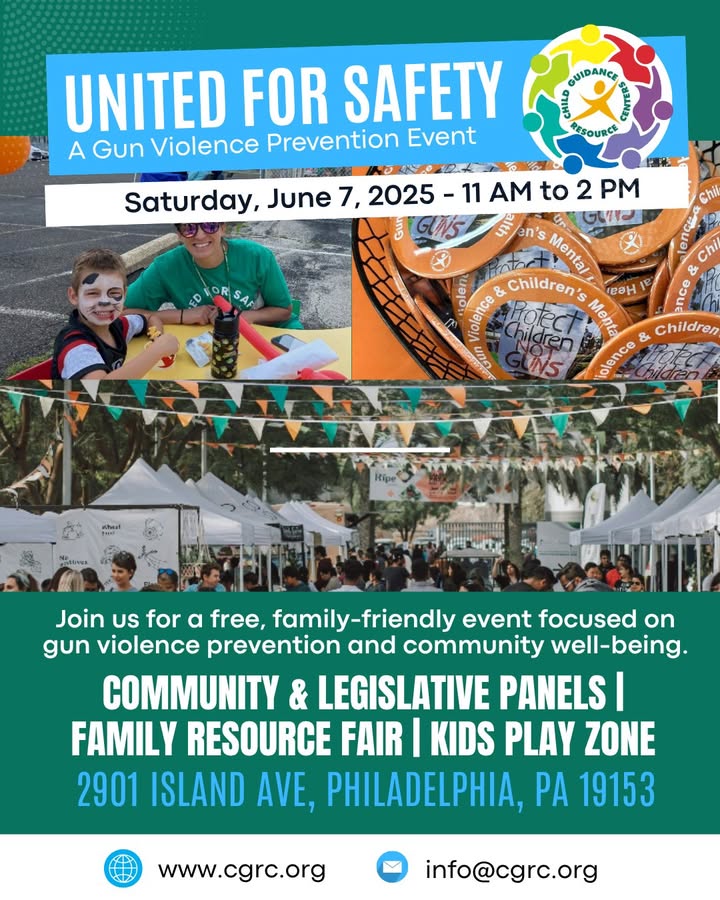 Are you ready?! United for Safety is almost here. This community event is one you won't want to miss. We'll be bringing together thought leaders, change makers, organizations, and community members to discuss gun violence prevention and mental health access. Plus, we'll have lots of fun for the kids! Learn more: https://www.cgrc.org/united-for-safety (fb)