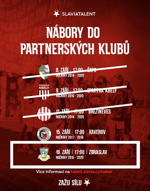 Již toto úterý nábor ročníků 2015 - 2020 pod taktovkou SK Slavia Praha na Zbraslavi. Registrace: https://talent.slavia.cz/nabor (fb)