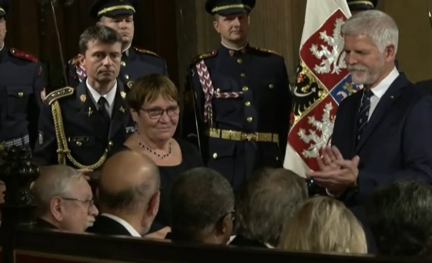 Ve Vladislavském sále právě převzala Řád TGM z rukou prezidenta republiky paní ANNA ŠABATOVÁ, jedna z mluvčích Charty 77, dříve ombudsmanka a předsedkyně Českého helsinského výboru za vynikající zásluhy o rozvoj demokracie, humanity a lidská práva. Srdečně blahopřejeme. (fb)