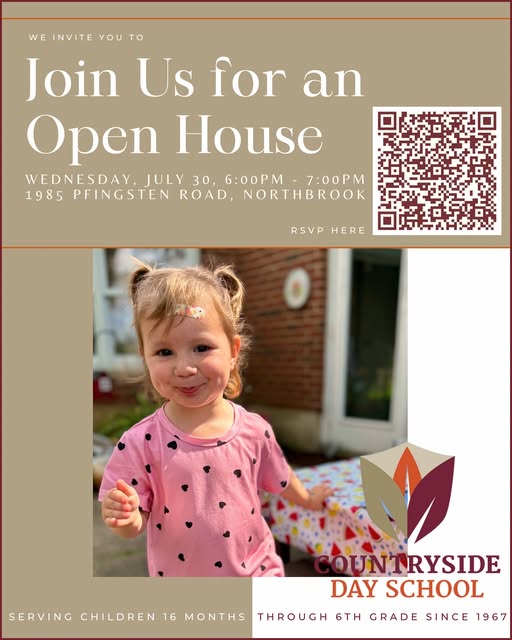Join Us Tomorrow Evening! We’re hosting a special Open House for prospective parents, and we’d love for you to see what makes Countryside Day School such a unique and joyful place to learn. Only a few toddler spots remain for fall enrollment—come see why families choose Countryside! Wednesday, July 30 6:00–7:00 PM 1985 Pfingsten Road, Northbrook Scan the QR code to RSVP—we can’t wait to welcome you! #toddler #prek #kindergarten #elementaryschool #montessori #countrysidedayschool #villageofnorthbrook #northbrookmoms #glenviewmoms #chicagonorthshoremoms #northshoremoms (fb)