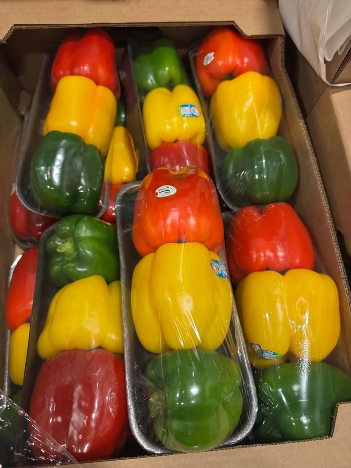 Bright and colorful bell peppers spotted in our warehouse this week! 🫑💛 Packed with vitamin C, these crunchy veggies make a great snack with hummus. Want more ideas? Type "peppers" into our recipe filter on the website to discover delicious ways to cook with them. (fb)