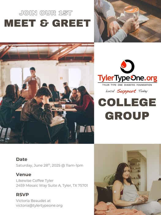 🎉 Today’s the day! Our very first College & Young Adult Type 1 Group meets THIS MORNING at 11 AM at Likewise Coffee! ☕💙 Come hang out, connect with others who get it, and enjoy some good conversation (and even better coffee). No agenda—just a chance to build community. See you soon! 👋 #Type1Diabetes #CollegeT1D #SupportGroup #T1DCommunity #TylerTypeOne (fb)