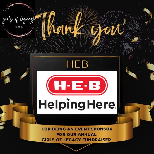 A special THANK YOU to one of our event sponsors; H-E-B for helping make our Annual Girls of Legacy Fundraiser happen! For more information on our Girls of Legacy Initiative, visit the link in bio -> Linktree -> Girls of Legacy To learn more about our amazing sponsor visit: https://www.heb.com/ #WomenEmpowerment #GirlsOfLegacy #HEBHelpingHere (fb)