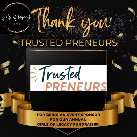 A special THANK YOU to one of our event sponsors; Trustedpreneurs for helping make our Annual Girls of Legacy Fundraiser happen! For more information on our Girls of Legacy Initiative, visit the link in bio -> Linktree -> Girls of Legacy To learn more about our amazing sponsor visit: https://trustedpreneurs.com #WomenEmpowerment #GirlsOfLegacy (fb)