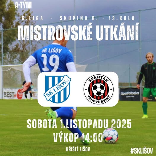 🔵⚪️ MUŽI O VÍKENDU ⚽️ Poslední domácí zápas podzimní části sezóny čeká v sobotu naše áčko. Do Lišova přijede loňský účastník krajského přeboru Spartak Trhové Sviny. Přijďte zafandit 💪 zápas začíná ve 14:00. 🏆 6.liga - 13.kolo 🆚 TJ Spartak Trhové Sviny 📆 sobota 1.listopadu 2025 ⌚️ 14:00 🏟️ Lišov Stejný zápas čeká v neděli oba B-týmy, když naše béčko hraje venku s béčkem Trhových Svinů. 🔵⚪️ SK Lišov (fb)