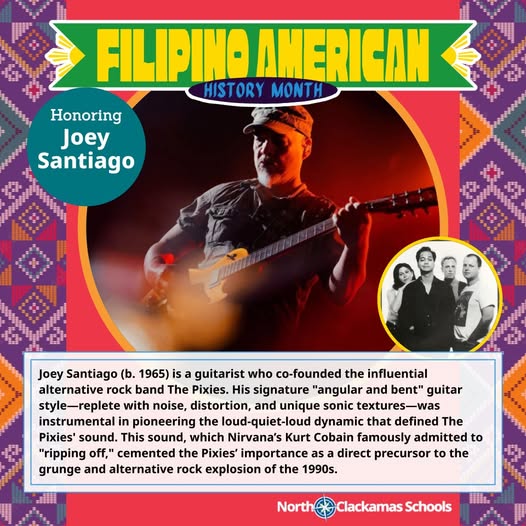 Joey Santiago (b. 1965) is a guitarist who co-founded the influential alternative rock band The Pixies. His signature "angular and bent" guitar style—replete with noise, distortion, and unique sonic textures—was instrumental in pioneering the loud-quiet-loud dynamic that defined The Pixies' sound. This sound, which Nirvana’s Kurt Cobain famously admitted to "ripping off," cemented the Pixies’ importance as a direct precursor to the grunge and alternative rock explosion of the 1990s. To hear Joey Santiago’s music, visit https://open.spotify.com/artist/6zvul52xwTWzilBZl6BUbT (fb)